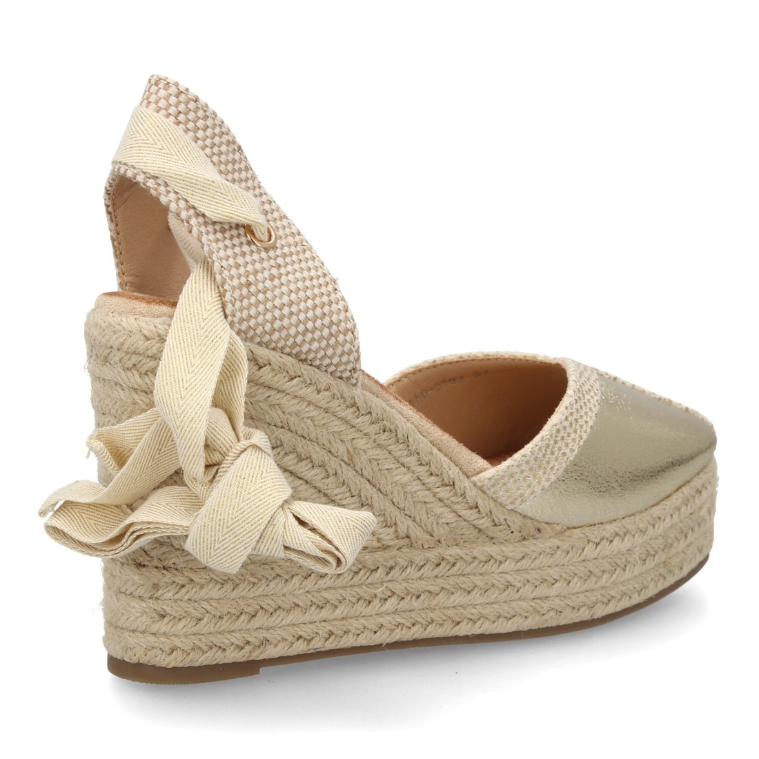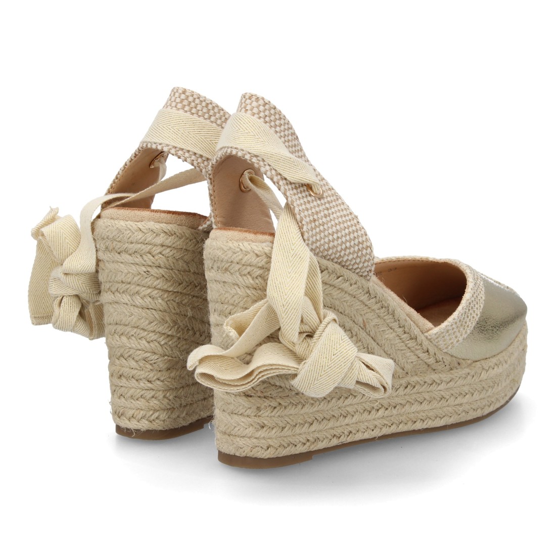 Cómo limpiarlas: elimina primero el polvo con un paño seco o un cepillo suave. En la zona textil beige, utiliza un paño ligeramente humedecido con agua y jabón neutro, evitando empapar el material. En la parte metalizada en oro, limpia con suavidad para conservar el brillo y el acabado bonito durante más tiempo. No uses lavadora, secadora ni productos abrasivos. Déjalas secar siempre a la sombra y evita las fuentes de calor directas. Si quieres más consejos prácticos, en /blog/ encontrarás ideas útiles para cuidar tu calzado.