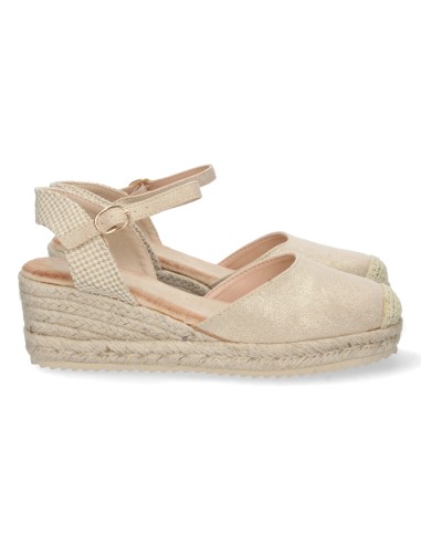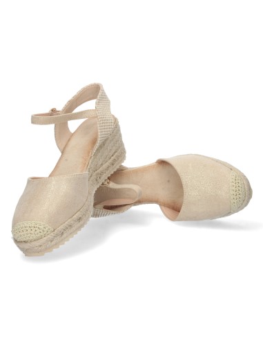 Añade un toque de sofisticación a tu estilo con estas alpargatas de cuña en color oro. Su sutil brillo las hace ideales para cualquier ocasión, combinando comodidad y elegancia en un solo diseño.