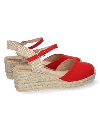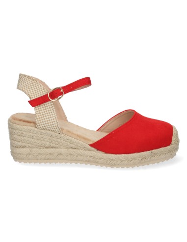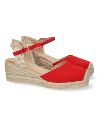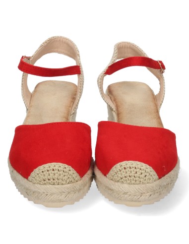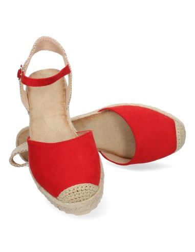 Dale un toque vibrante y sofisticado a tu look con estas alpargatas de cuña en color rojo. Su diseño clásico con punta cerrada y pulsera ajustable las convierte en un básico imprescindible para cualquier temporada.
