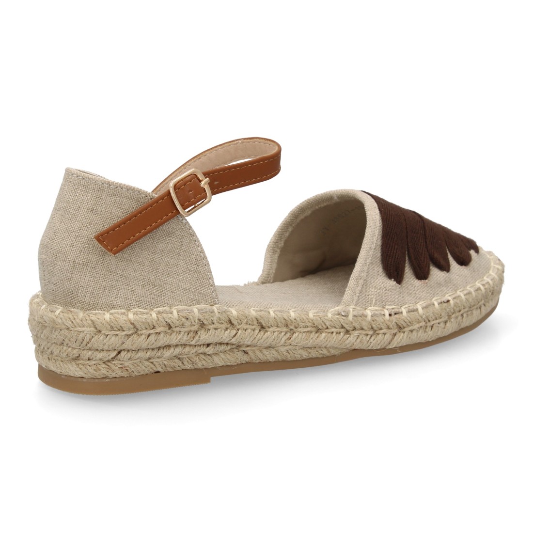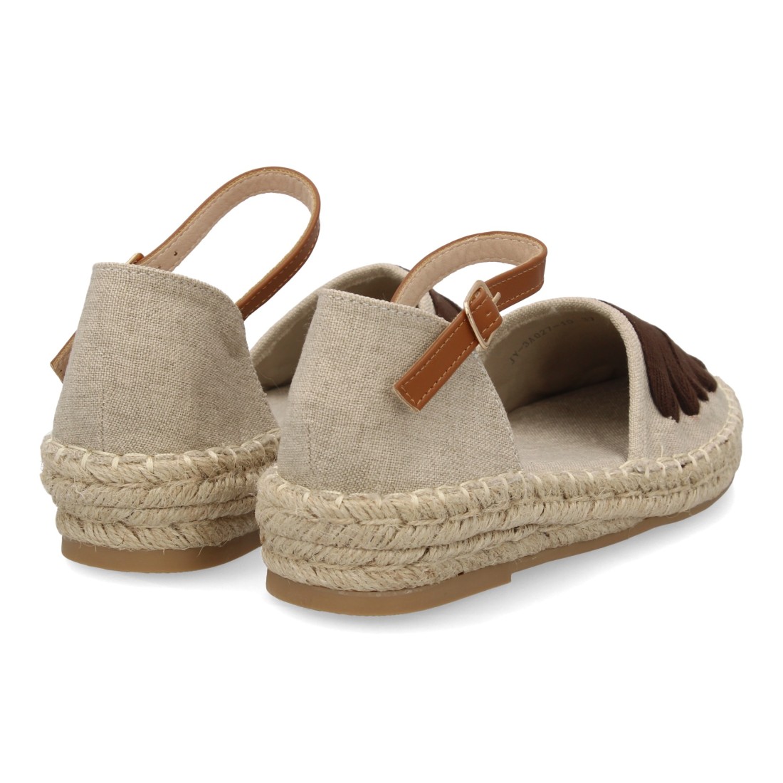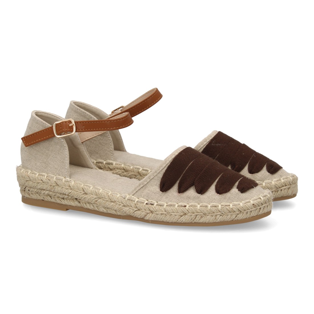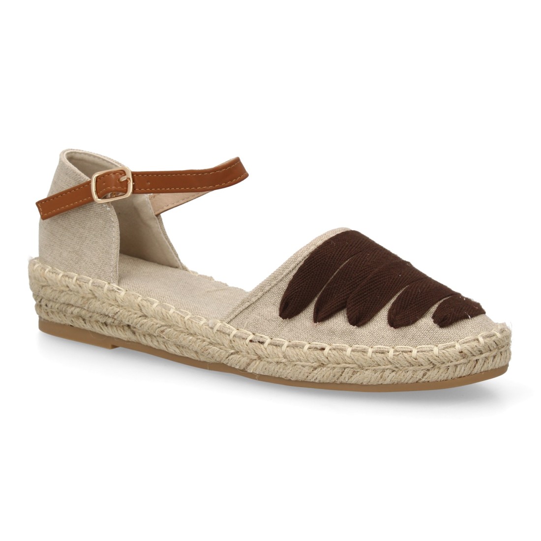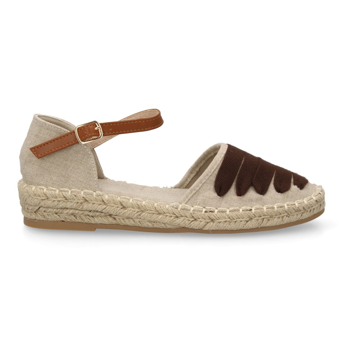 - Diseño tipo alpargata con tiras de lazo de algodón en color marrón