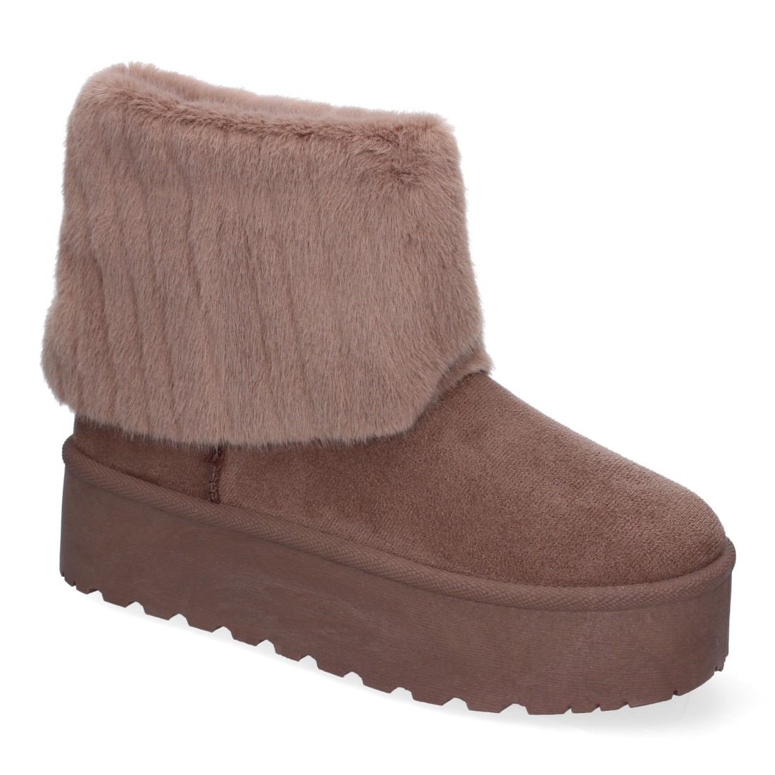 Botines con Peluche en Color Café y Plataforma.