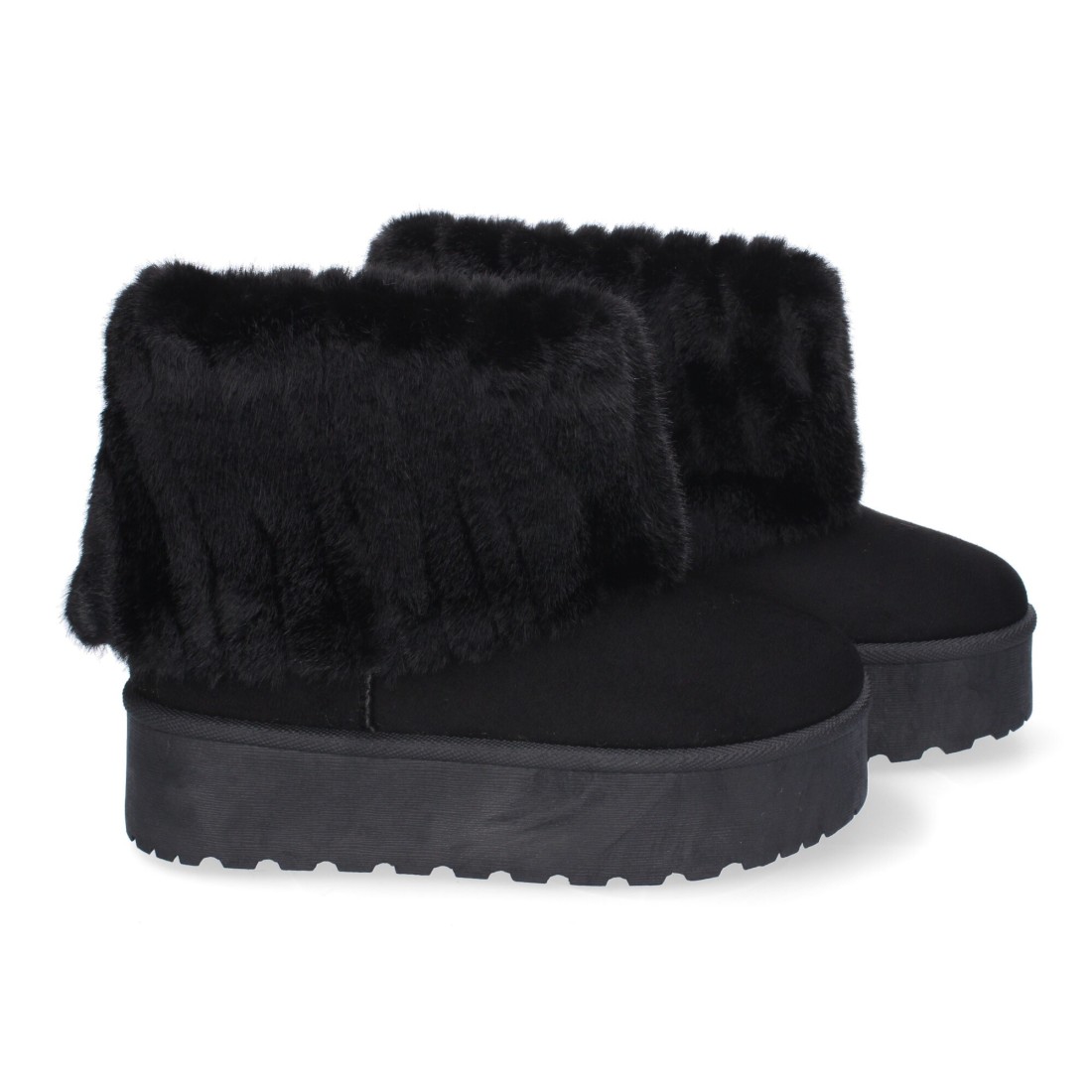 ¡Dale un toque sofisticado y moderno a tu outfit invernal! Estos botines negros con detalles de peluche son la combinación perfecta de estilo y comodidad. Ideales para los días fríos en los que quieres destacar.