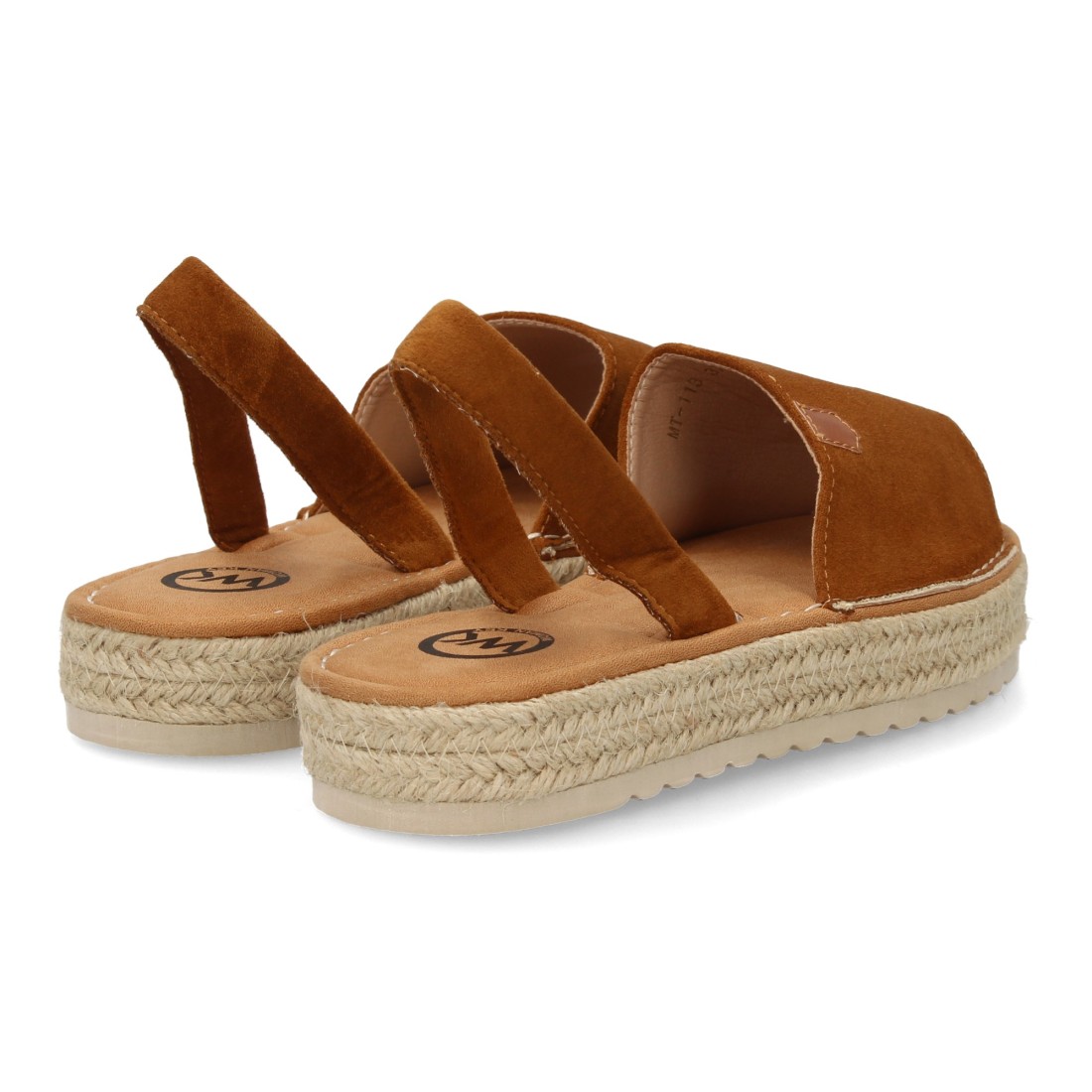 La pala delantera cubre el empeine con una línea limpia y muy favorecedora, lo que hace que este diseño resulte fácil de combinar y visualmente equilibrado. El color camel aporta calidez y naturalidad, además de ser uno de esos tonos atemporales que siempre funcionan en el armario de temporada. Combina especialmente bien con prendas en blanco, beige, crudo, negro, denim, verde oliva o estampados suaves. Además, el detalle de la base con yute trenzado refuerza su estilo casual, natural y veraniego, perfecto para looks relajados pero bien resueltos.