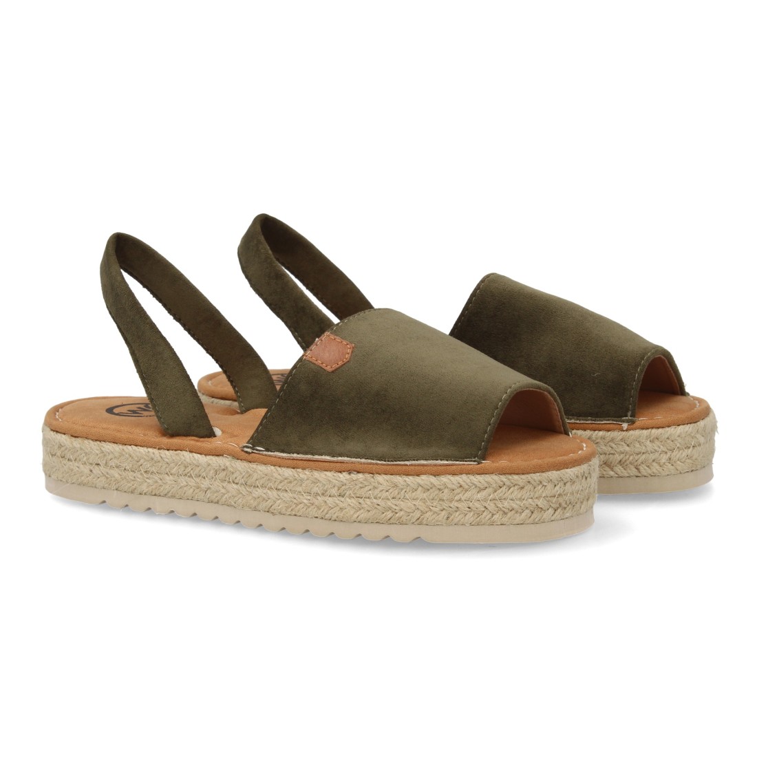 Las sandalias planas tipo Menorquina Verde con Plataforma son una opción perfecta para quienes buscan un calzado femenino, cómodo y con un estilo natural para primavera y verano. Su diseño combina una pala amplia en tono verde caqui con acabado suave, una talonera abierta con tira trasera y una base de yute trenzado que aporta ese aire mediterráneo tan favorecedor y fácil de llevar. El resultado es un modelo fresco, versátil y muy práctico para acompañarte en el día a día sin renunciar al encanto de un calzado bonito y actual.