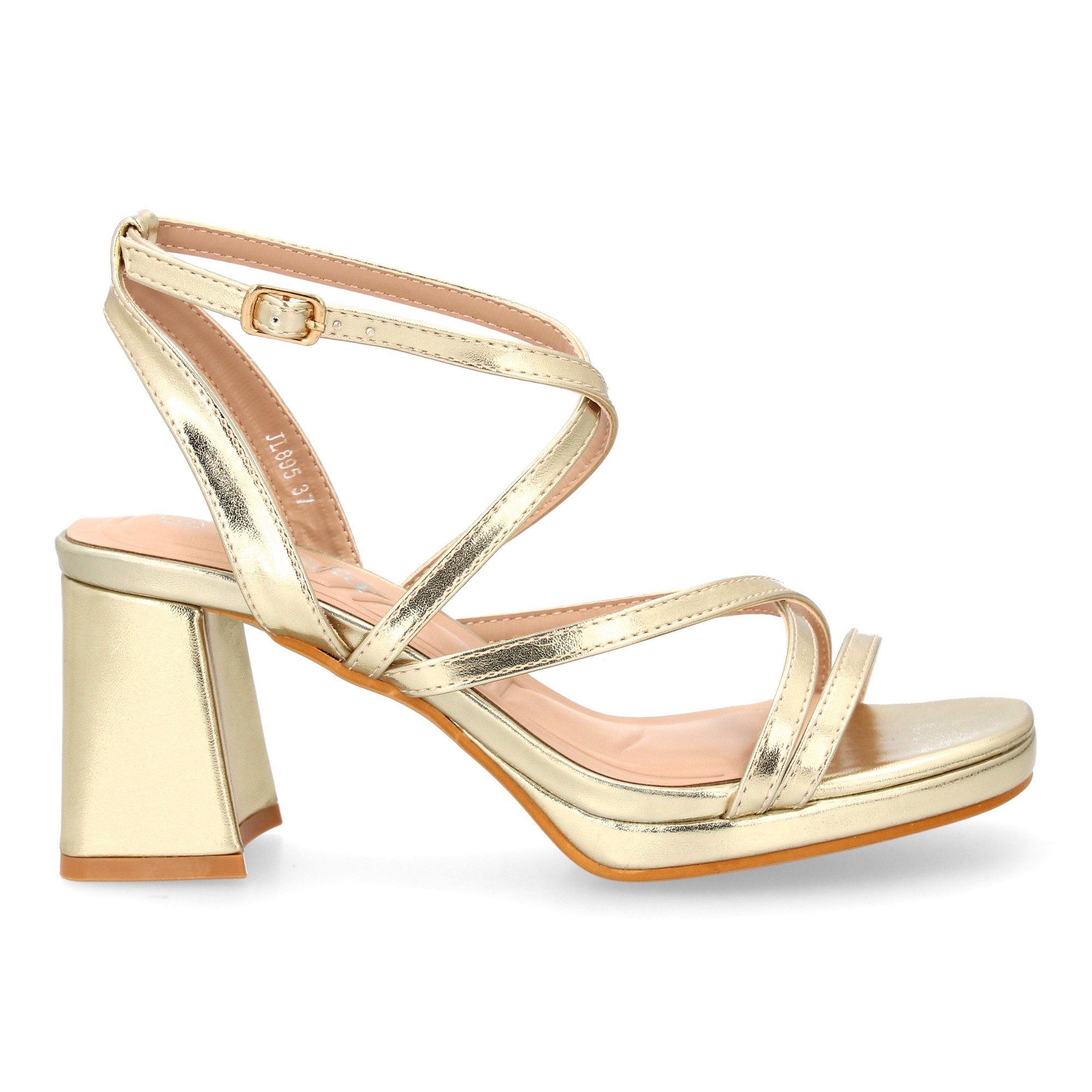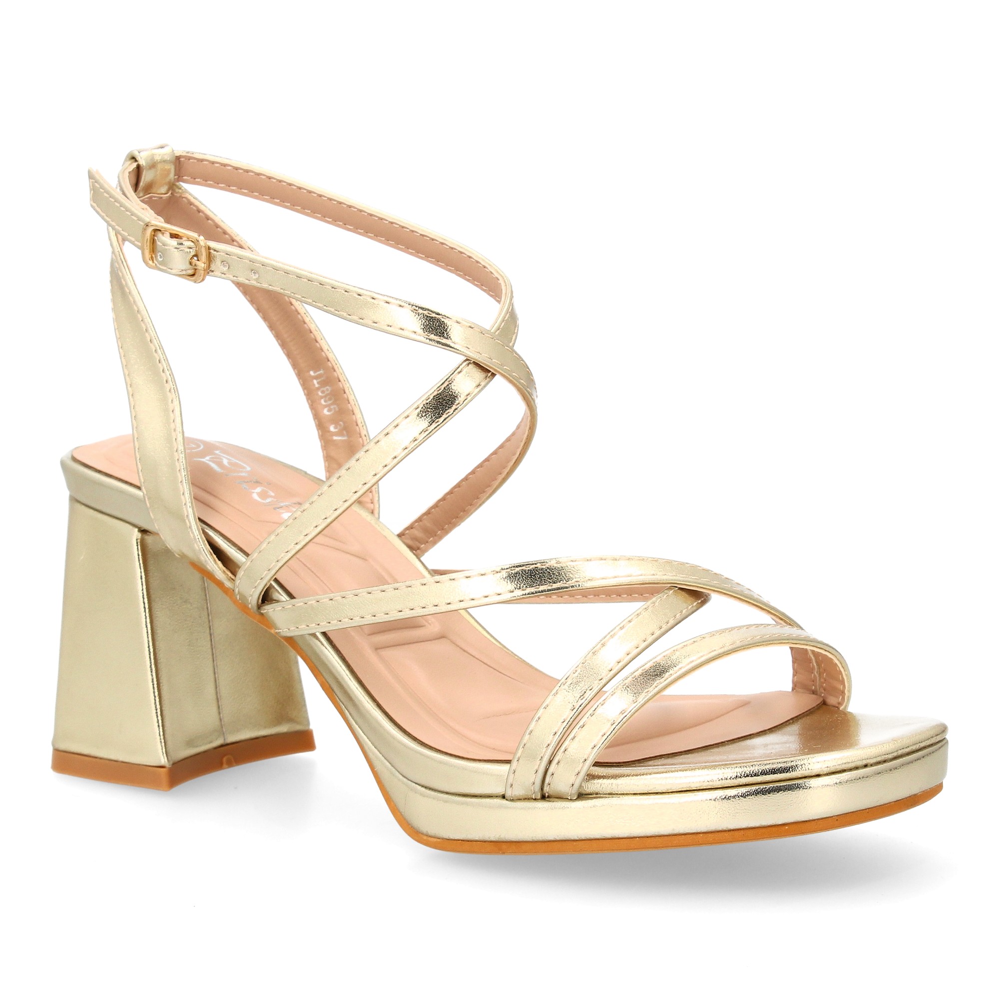 Eleva tus looks de invitada —y también los de diario— con esta sandalia de tacón ancho y tiras cruzadas finas que estilizan el empeine y sujetan el pie con delicadeza. Su acabado dorado metalizado aporta un brillo elegante sin estridencias, perfecto para bodas, comuniones, cenas especiales o para renovar unos vaqueros y una blusa satinada. El cierre de hebilla en el tobillo te permite ajustar la sujeción y la plataforma delantera equilibra la altura para que llegues cómoda al final del día.