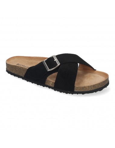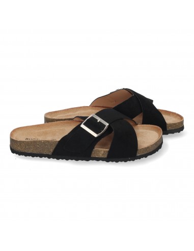 Sandalias Negras Planas Planta Bio Pala Cruzada Para Mujer.