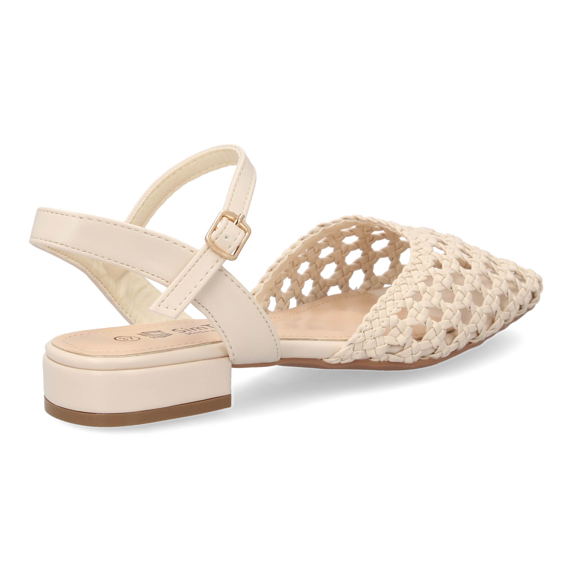 Diseño: Pala cerrada trenzada con textura natural y acabados cuidados