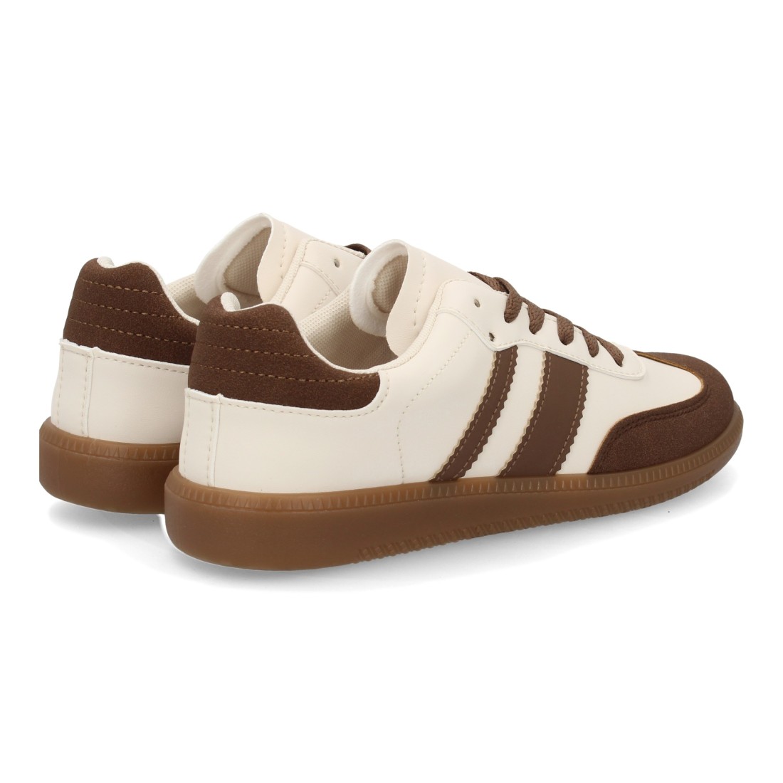Si buscas unas zapatillas con aire retro que combinen con todo y te acompañen a diario, este modelo de Zapatillas Retro Beige y Marrón con Suela Gum es un acierto. La mezcla de tonos crema con detalles chocolate crea un contraste elegante y muy fácil de integrar en cualquier armario. El acabado tipo serraje aporta textura y un toque premium, mientras que la suela color caramelo suma ese guiño vintage que nunca pasa de moda. Son ideales para primavera-verano y entretiempo, pero también funcionan en otoño con looks de capas.