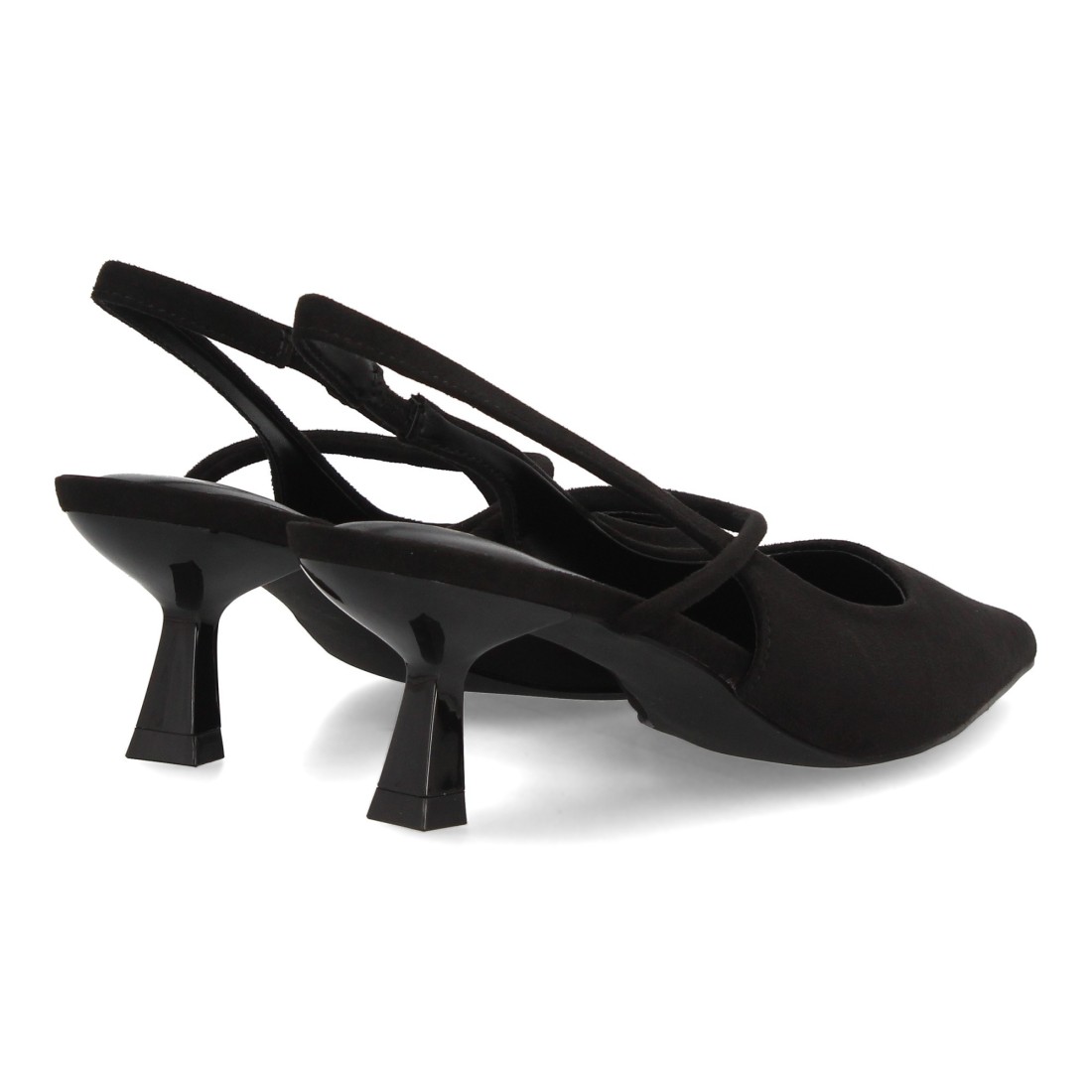 Zapatos Slingback Negros de Tacón Kitten con Punta Fina y Tiras Cruzadas para un look elegante y cómodo. Punta fina, sujeción estable y estilo perfecto para diario o eventos. Tu fondo de armario te lo pide.