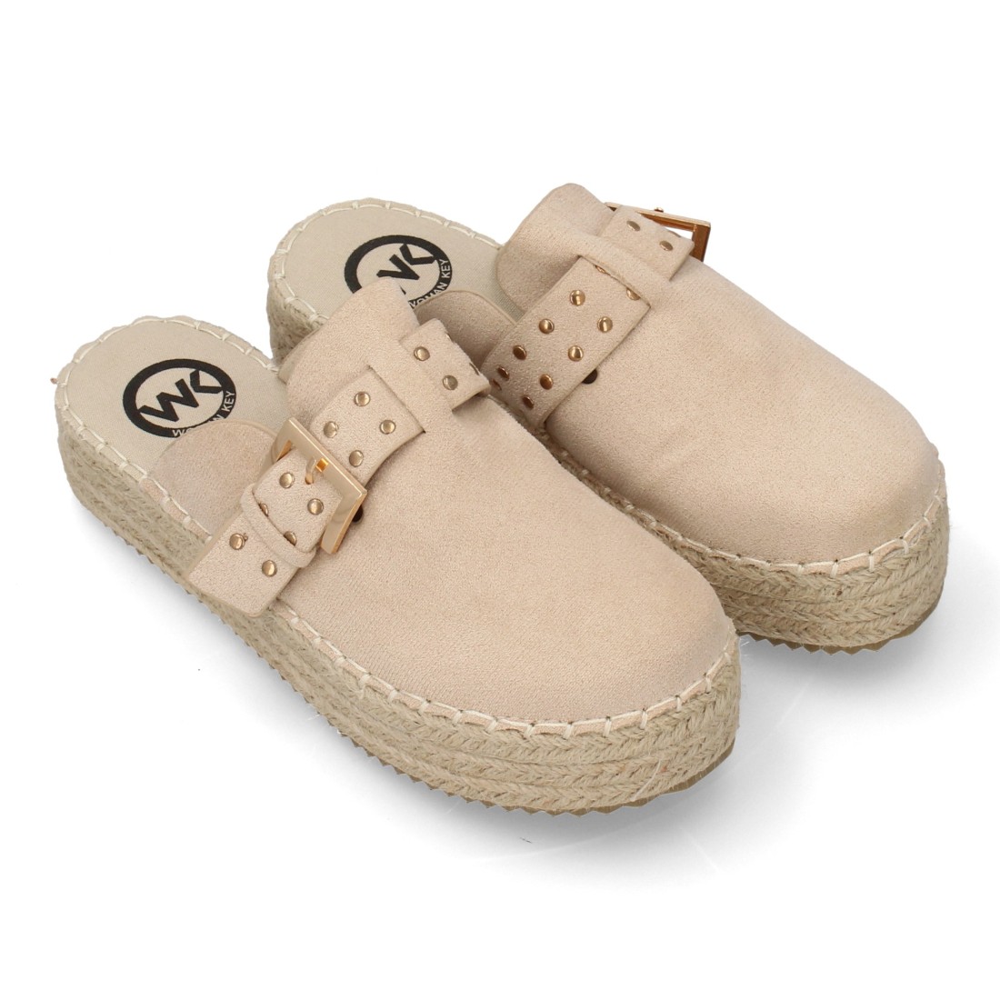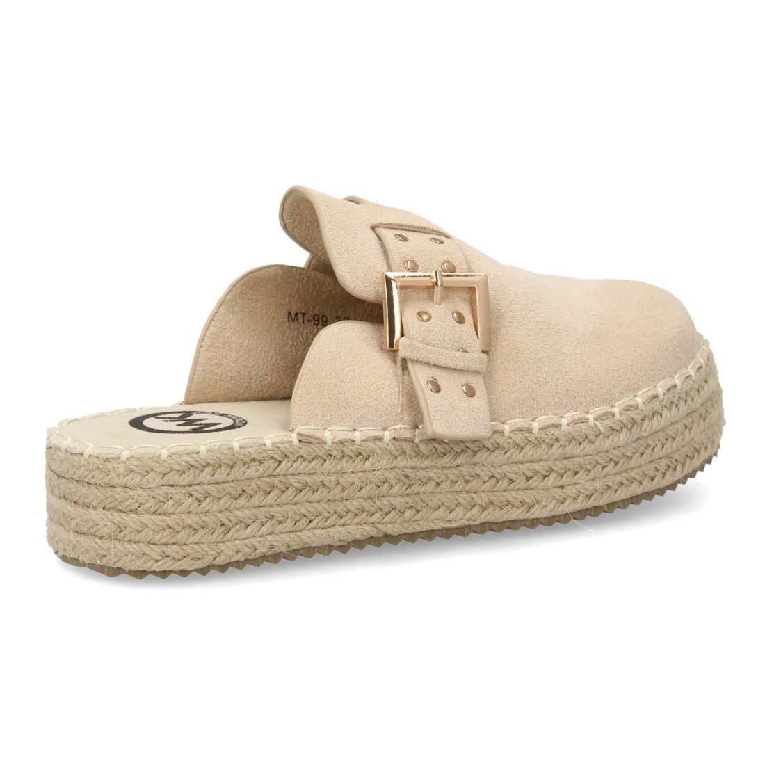 Zuecos de Mujer con Plataforma Tipo Yute en Color Beige